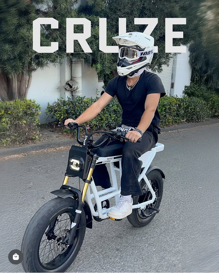 The 48V - 250W SUPER STRADA tuned BAFANG motor and 20Ah SS-PRO battery deliver extreme power and extended range, making the CRUZE perfect for city commutes and weekend getaways.
